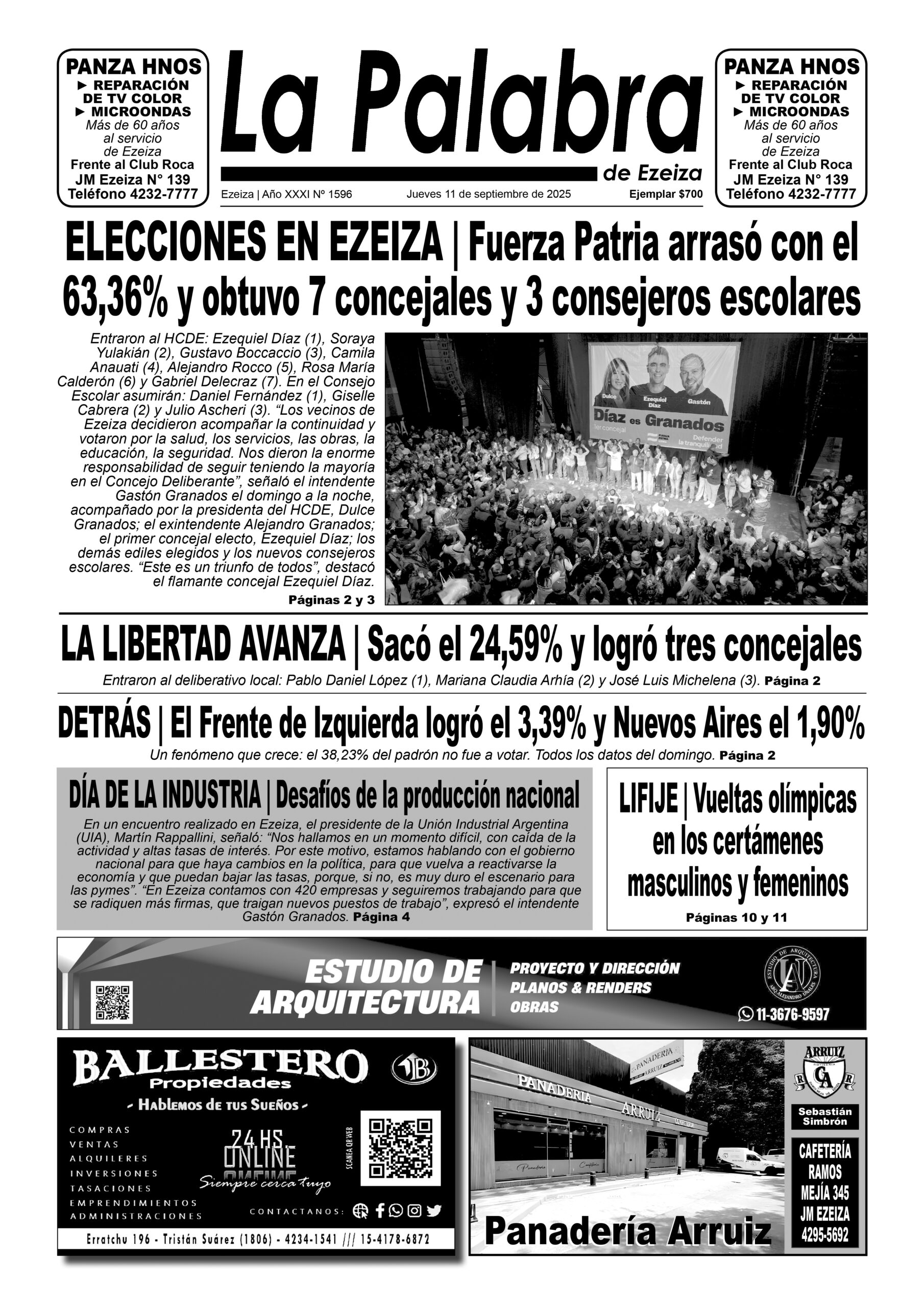 ELECCIONES EN EZEIZA | Fuerza Patria ganó con el 63,36%, seguido por La Libertad Avanza con el 24,59%