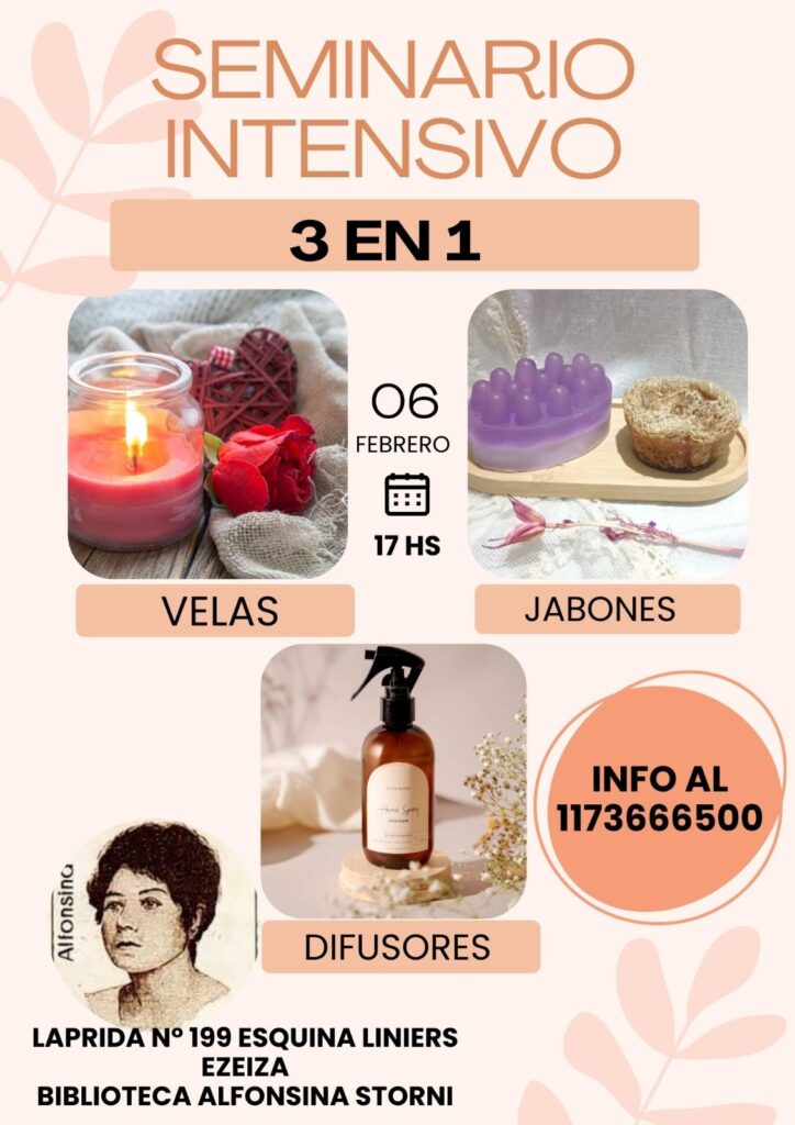 ► SEMINARIO INTENSIVO 3 EN 1: VELAS, JABONES Y DIFUSORES. Tendrá lugar el viernes 6 de febrero, a las 17 horas. Consultas: al 11-7366-6500.