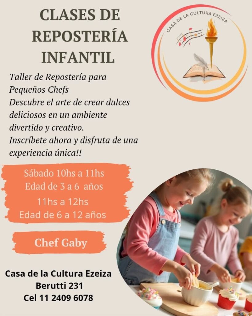 —Repostería Infantil. Sábado, 10 a 11 horas (de 3 a 6 años) y 11 a 12 (6 a 12 años). Prof. Chef Gaby.