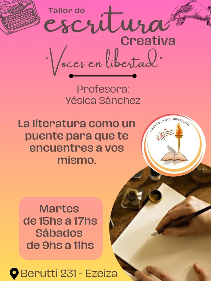 —Taller de Escritura. Martes, 15 a 17 horas. Sábado, 9 a 11 horas. Prof. Yésica Sánchez.