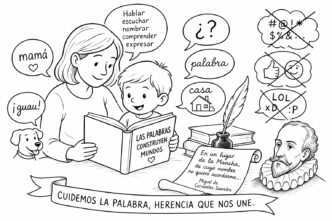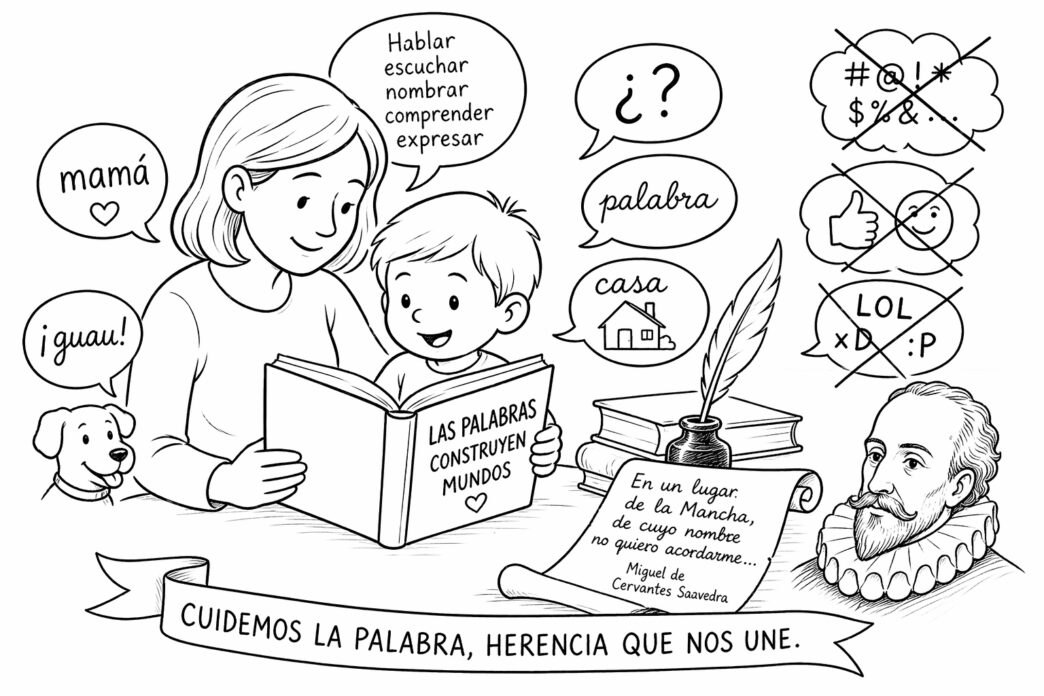 La formación neurolingüística del lenguaje se desarrolla en la primera infancia, sentando las bases del desarrollo futuro y su expansión a lo largo de la vida. La pregunta sería qué queda del rico idioma español de Cervantes si el mundo adulto —el que cría y guía— duda, se contradice y balbucea peor que un niño en la primera infancia; si acota su vocabulario a unas 200 palabras, mezcla el habla con spanglish y neologismos de cohorte adolescente, y reduce incluso el sentir a un “emoticón”.