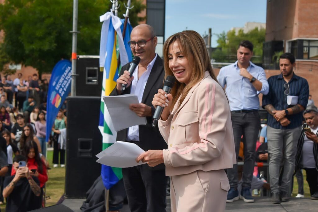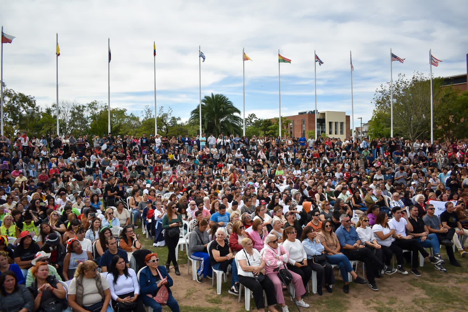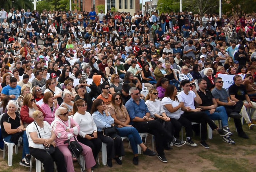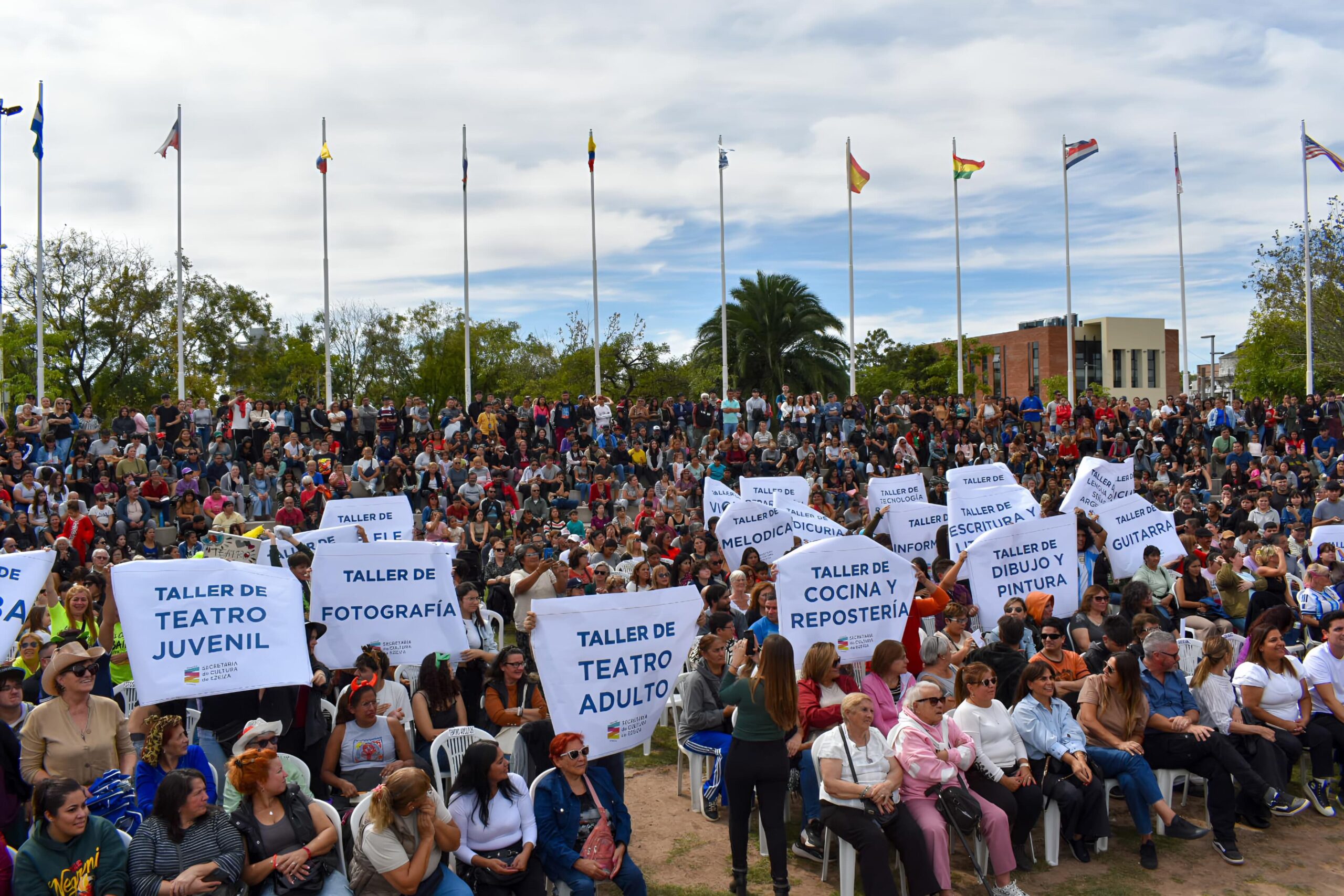 Ante un Anfiteatro del Parque Central repleto, se realizó un multitudinario acto en la inauguración de los Talleres Gratuitos Municipales organizados por la Secretaría de Cultura de Ezeiza. El acto encabezado por la Secretaria de Cultura, Dulce Granados, reunió a cientos de vecinos y vecinas. Los profesores dieron detalles de las cursadas que este año acompañarán la formación de los más de 6.500 inscriptos, una cifra récord que Granados consideró “un orgullo para la Municipalidad y la cultura de Ezeiza, que es tú cultura”. El sábado, cientos de familias colmaron el Anfiteatro del Parque Central de Ezeiza, en respuesta a la convocatoria realizada por la Secretaría de Cultura local, con motivo de la inauguración de los Talleres Gratuitos Municipales 2026. La ceremonia, encabezada por la secretaria de Cultura, Dulce Granados, se tiñó rápidamente con la alegría y la espontaneidad de Dulce que convocó a cada profesor al escenario mayor, en medio de risas, bailes y divertidas interacciones que mantuvieron al público activo y participativo durante toda la jornada. Durante el acto, el subsecretario de la cartera cultural, Jonathan Díaz Prado anunció que fueron 6.500 los inscriptos para el año 2026. Una cifra récord celebrada por Dulce quien la consideró “un orgullo para la Municipalidad y la cultura de Ezeiza, que es tú cultura”. Además remarcó que: “nada de esto sería posible sin la decisión política de nuestro intendente Gastón Granados quien nos convoca diariamente a trabajar con mirada empática hacia nuestro pueblo. Es por eso que en Ezeiza la cultura no retrocede, avanza. Por eso apostamos a la cultura, porque con ella generamos oportunidades, abrimos caminos y fortalecemos el tejido social de nuestra comunidad”.En el evento, que contó con la presencia de concejales y funcionarios del Municipio de Ezeiza, los profesores presentaron los contenidos y la dinámica de cada taller junto a los días y horarios de cursada que se extenderán a lo largo de toda esta semana en la Casa de la Cultura Municipal, ubicada en Zapala y Corrientes, en Villa Golf. El cierre a puro baile y color estuvo a cargo del Ballet Folclórico Municipal bajo la dirección de Omar Mazzei. Desde la Secretaría de Cultura recordaron que quienes no pudieron sumarse a esta primera tanda, podrán hacerlo en las inscripciones de medio término cuya fecha será anunciada en los próximos meses a través de las redes sociales de Cultura.