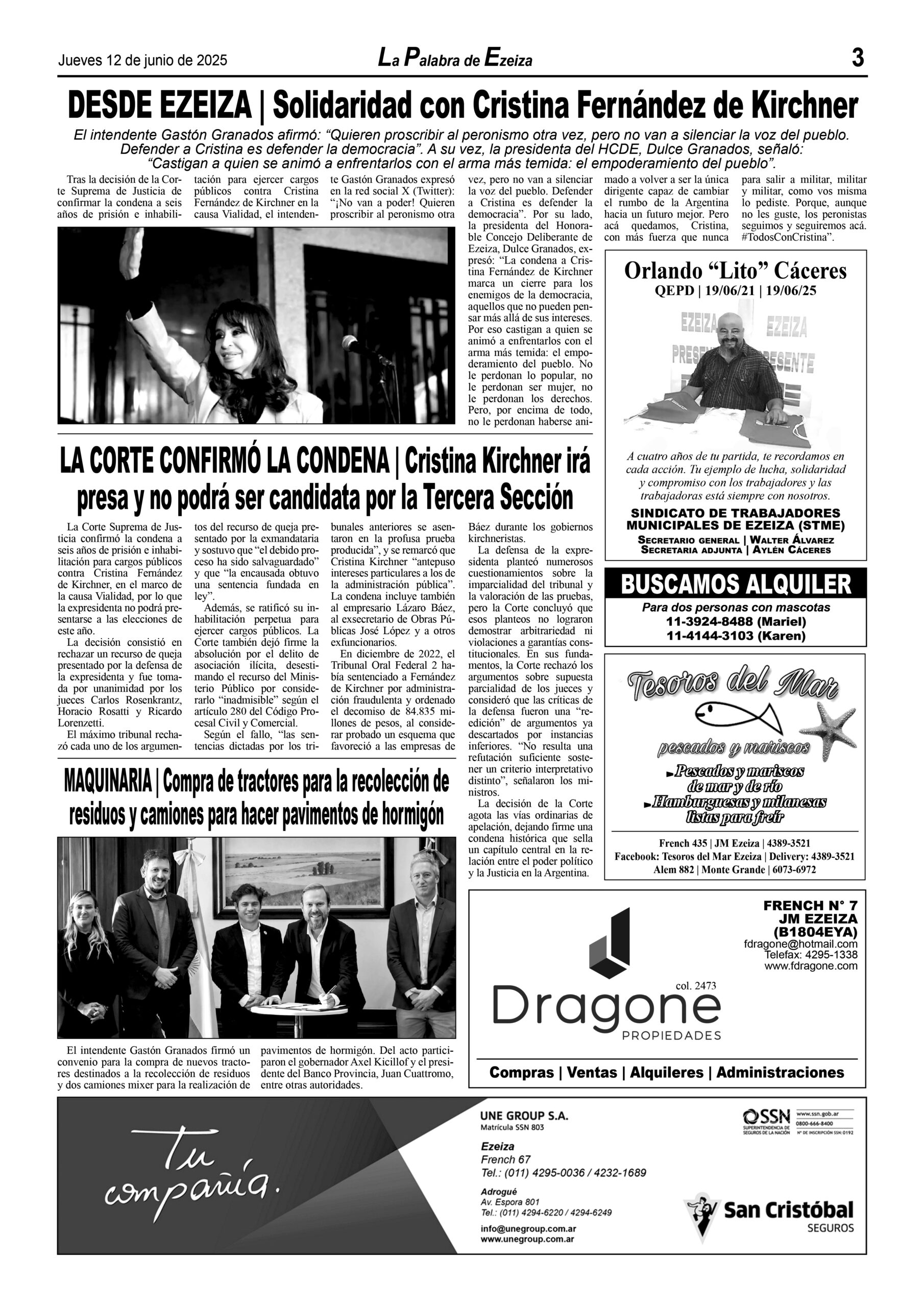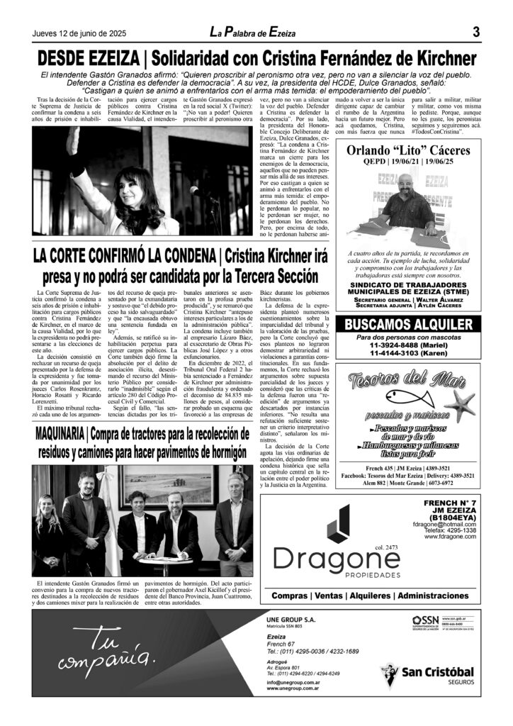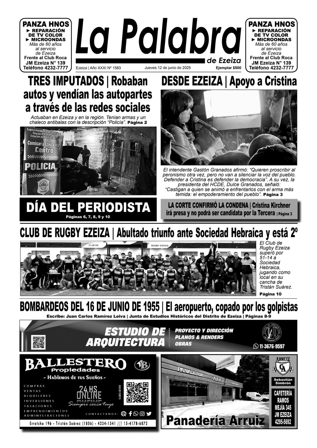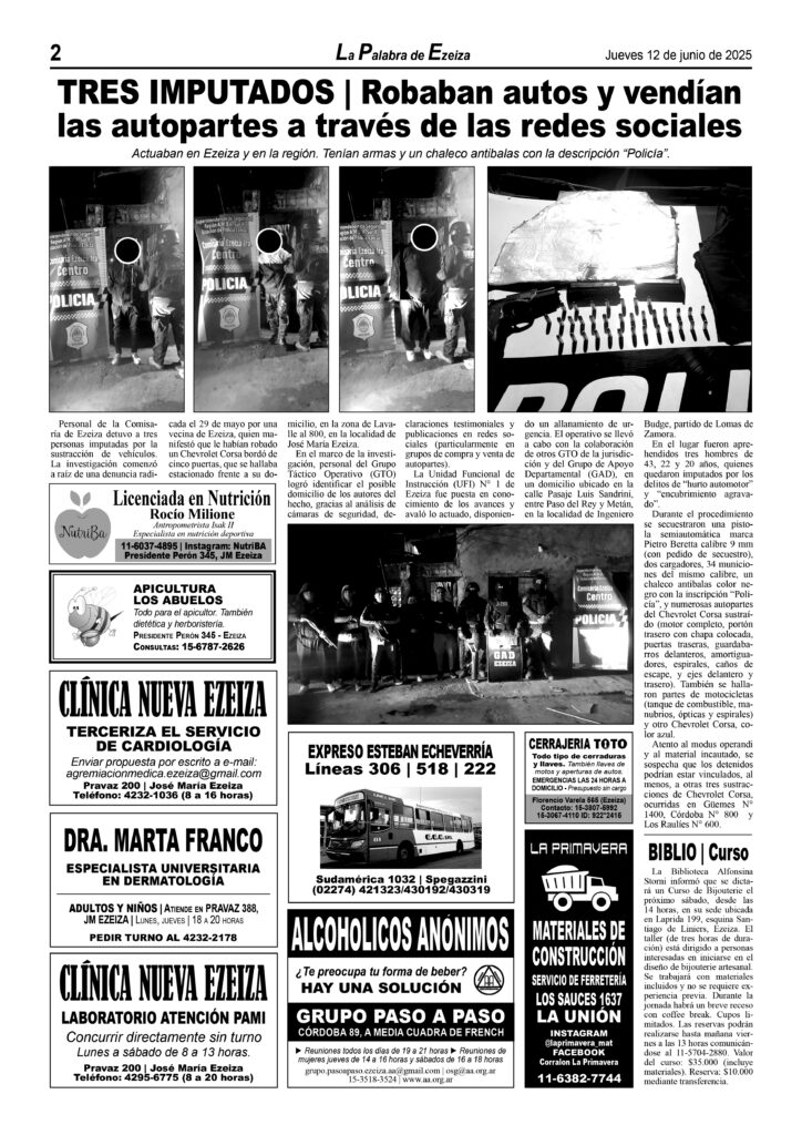Ya puede conseguirse en todos los kioscos de diarios y revistas del distrito de Ezeiza (Barrio Uno, Canning, José María Ezeiza, Tristán Suárez y Carlos Spegazzini) la edición papel Nº 1583 del semanario La Palabra de Ezeiza del jueves 12 de junio de 2025. Valor: $500.