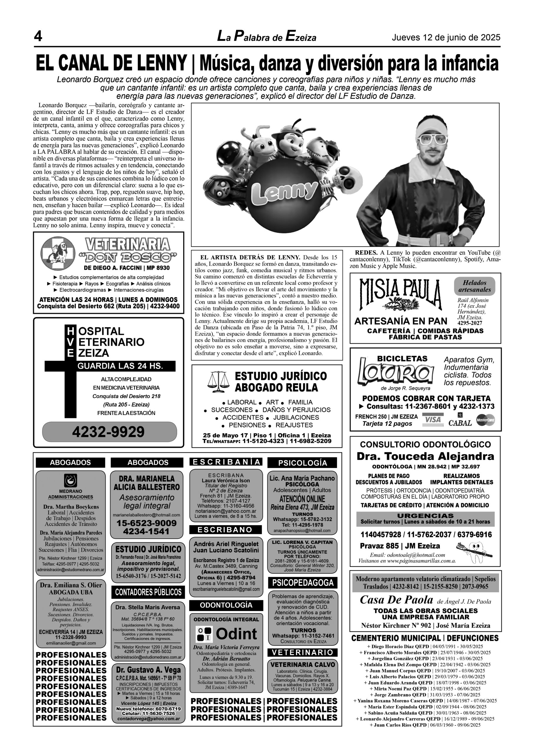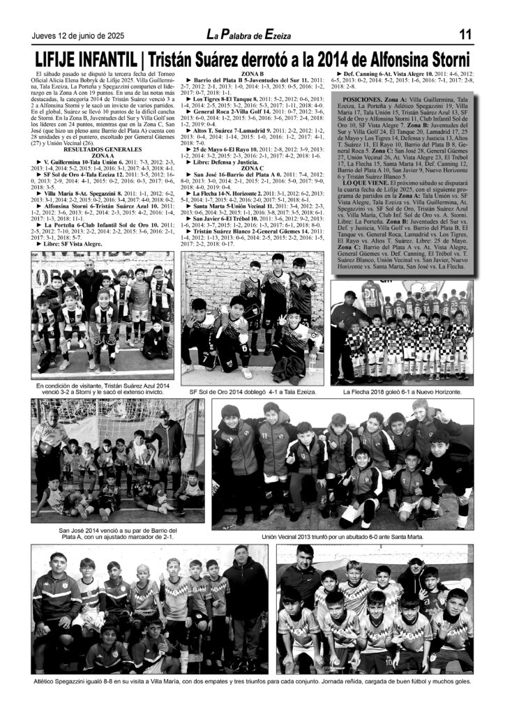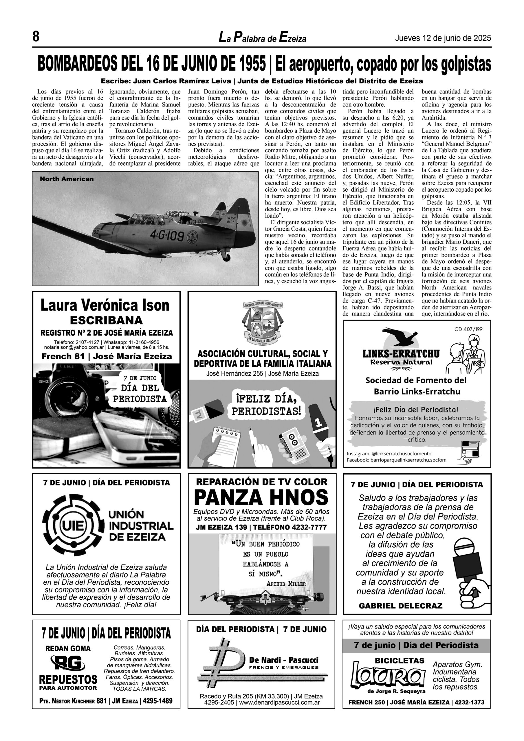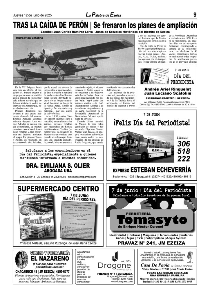 LA PALABRA DE EZEIZA SALE TODOS LOS JUEVES. Atención: Tucumán 142, José María Ezeiza, lunes a viernes de 9 a 13 horas. Teléfono: (5411) 4232-6274. WhatsApp: 11-2338-2539. Email: ezeizaediciones@yahoo.com.ar