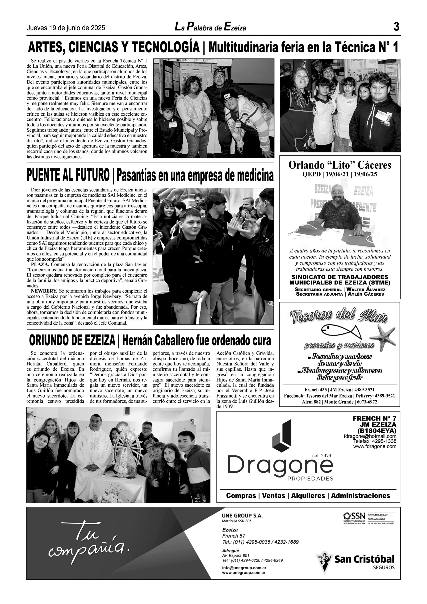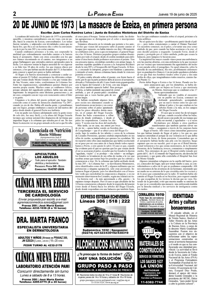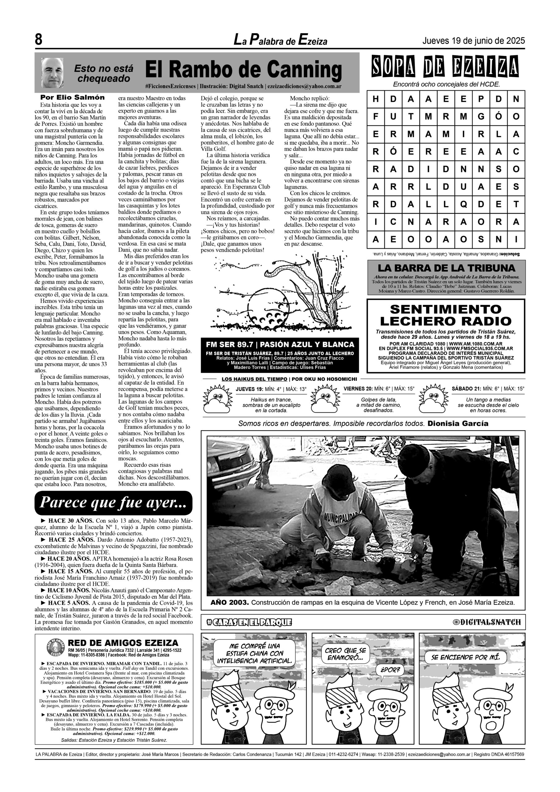 LA PALABRA DE EZEIZA SALE TODOS LOS JUEVES. Atención: Tucumán 142, José María Ezeiza, lunes a viernes de 9 a 13 horas. Teléfono: (5411) 4232-6274. WhatsApp: 11-2338-2539. Email: ezeizaediciones@yahoo.com.ar
