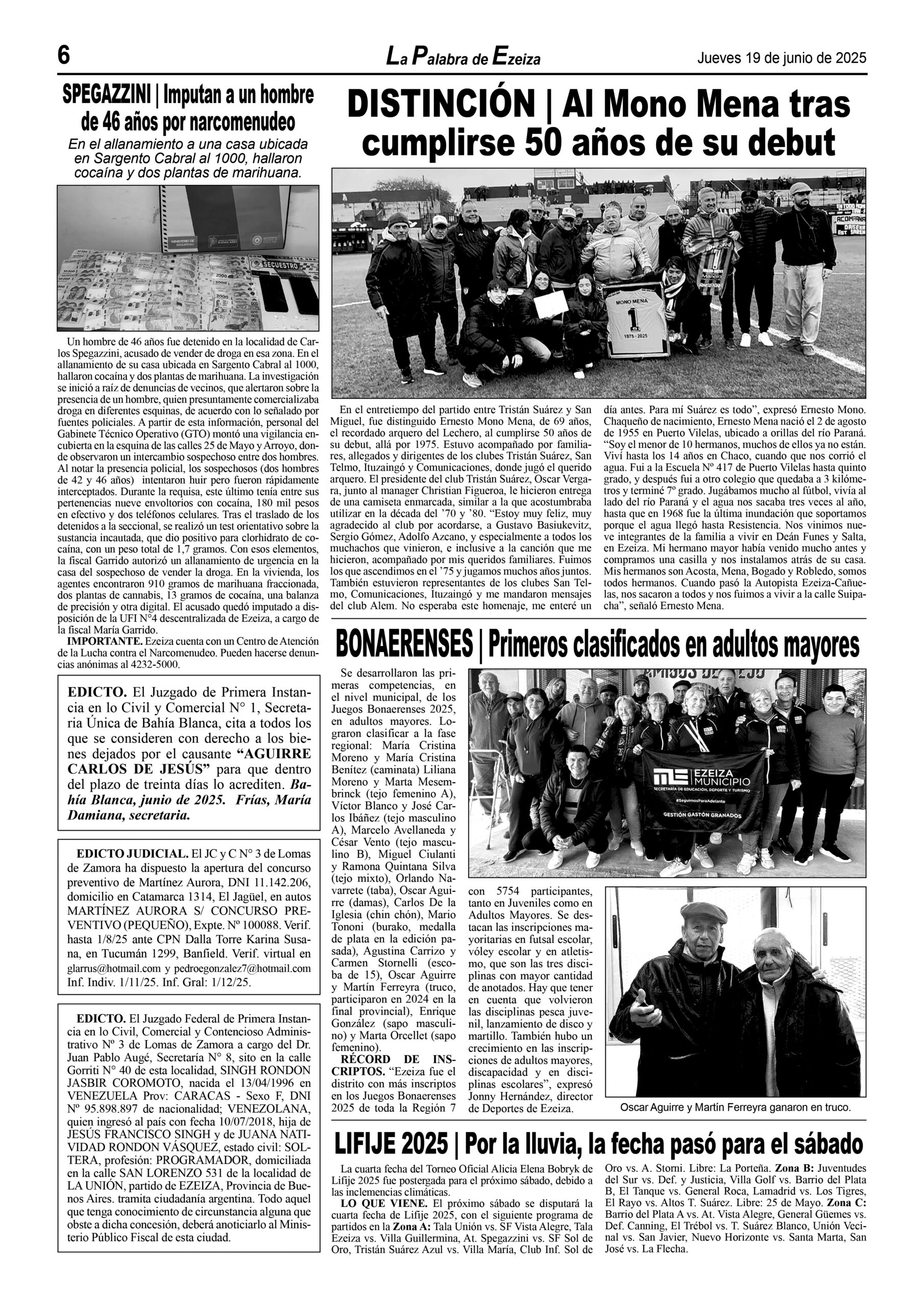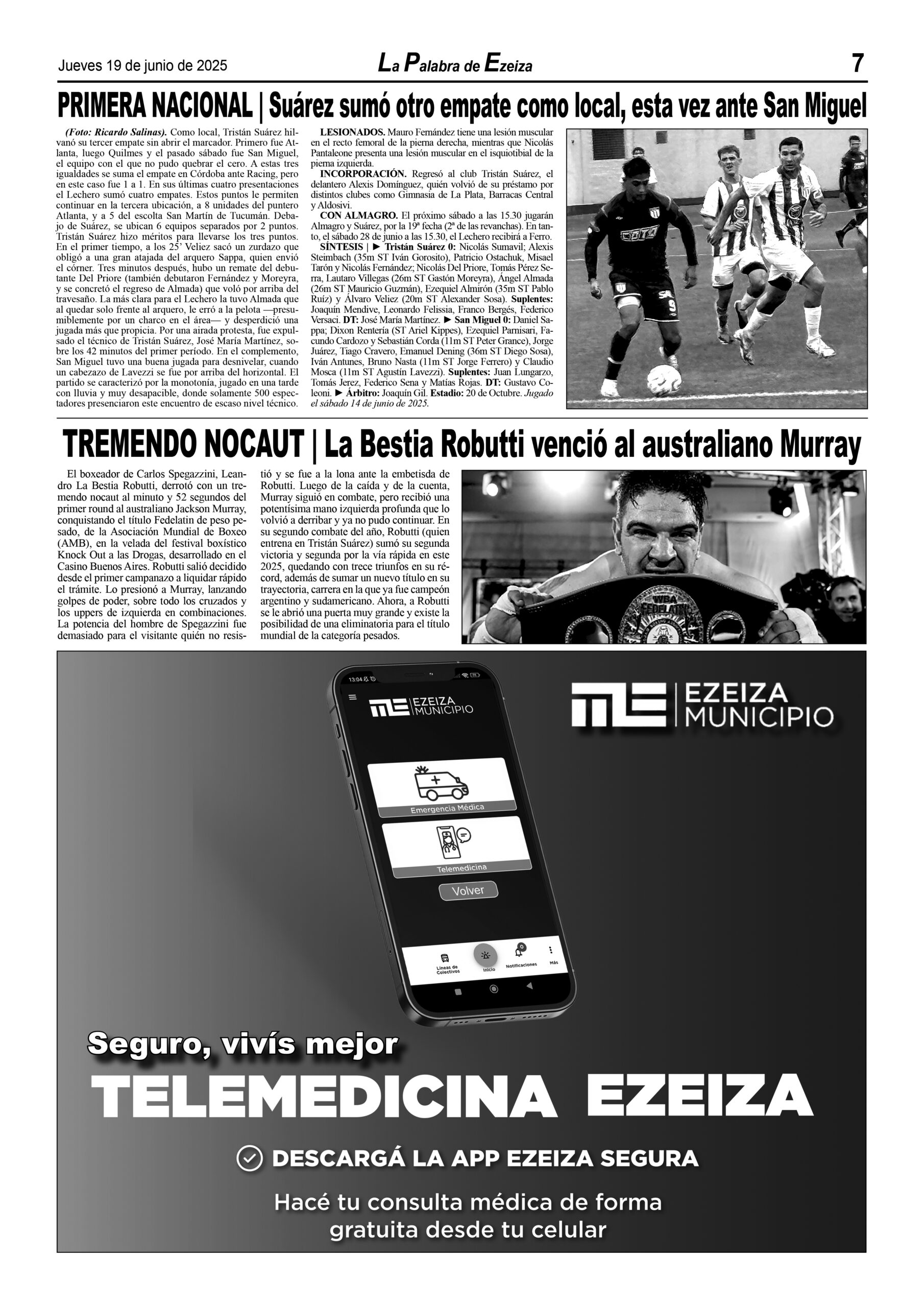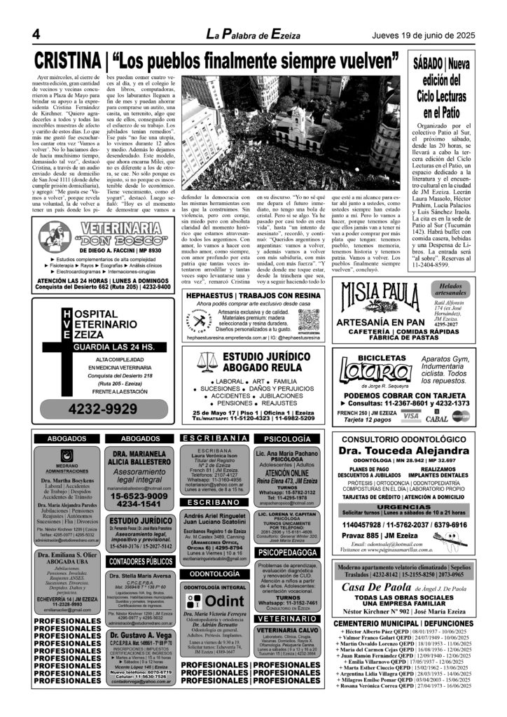 LA PALABRA DE EZEIZA SALE TODOS LOS JUEVES. Atención: Tucumán 142, José María Ezeiza, lunes a viernes de 9 a 13 horas. Teléfono: (5411) 4232-6274. WhatsApp: 11-2338-2539. Email: ezeizaediciones@yahoo.com.ar