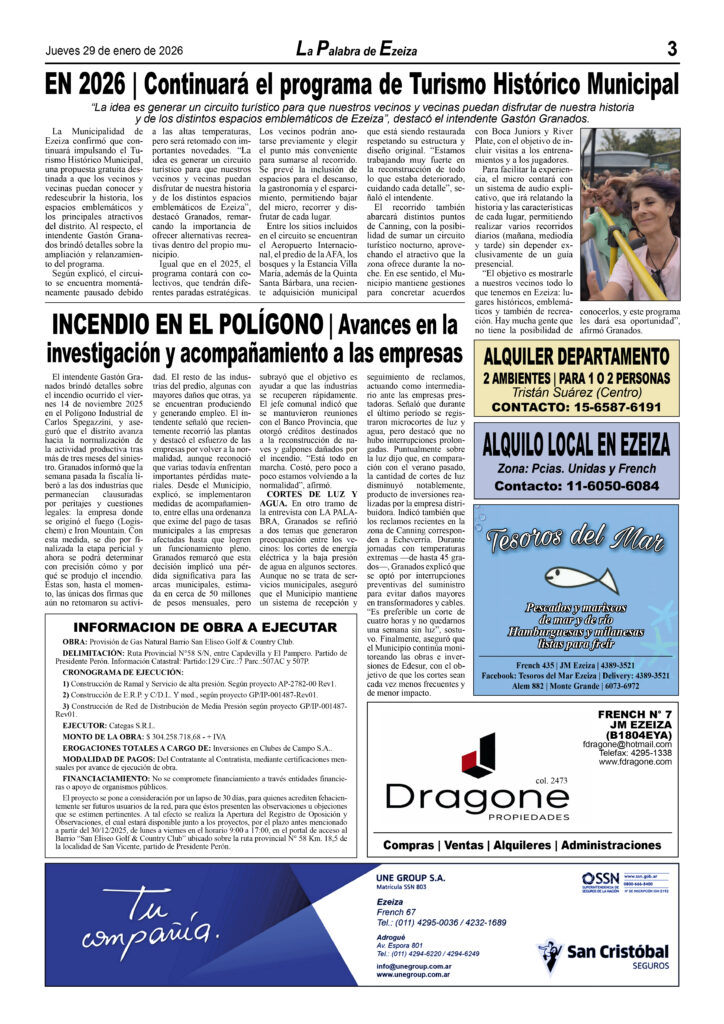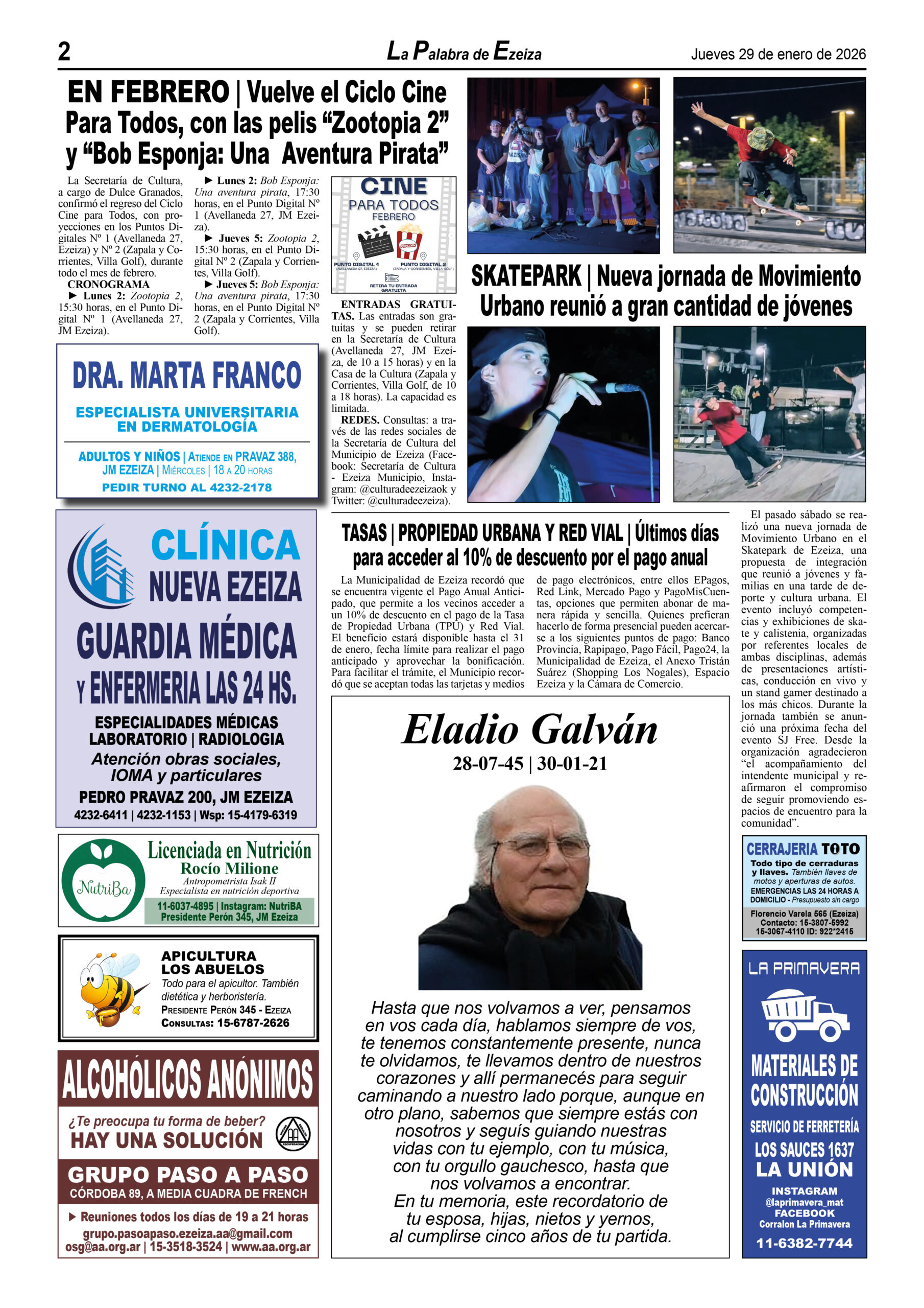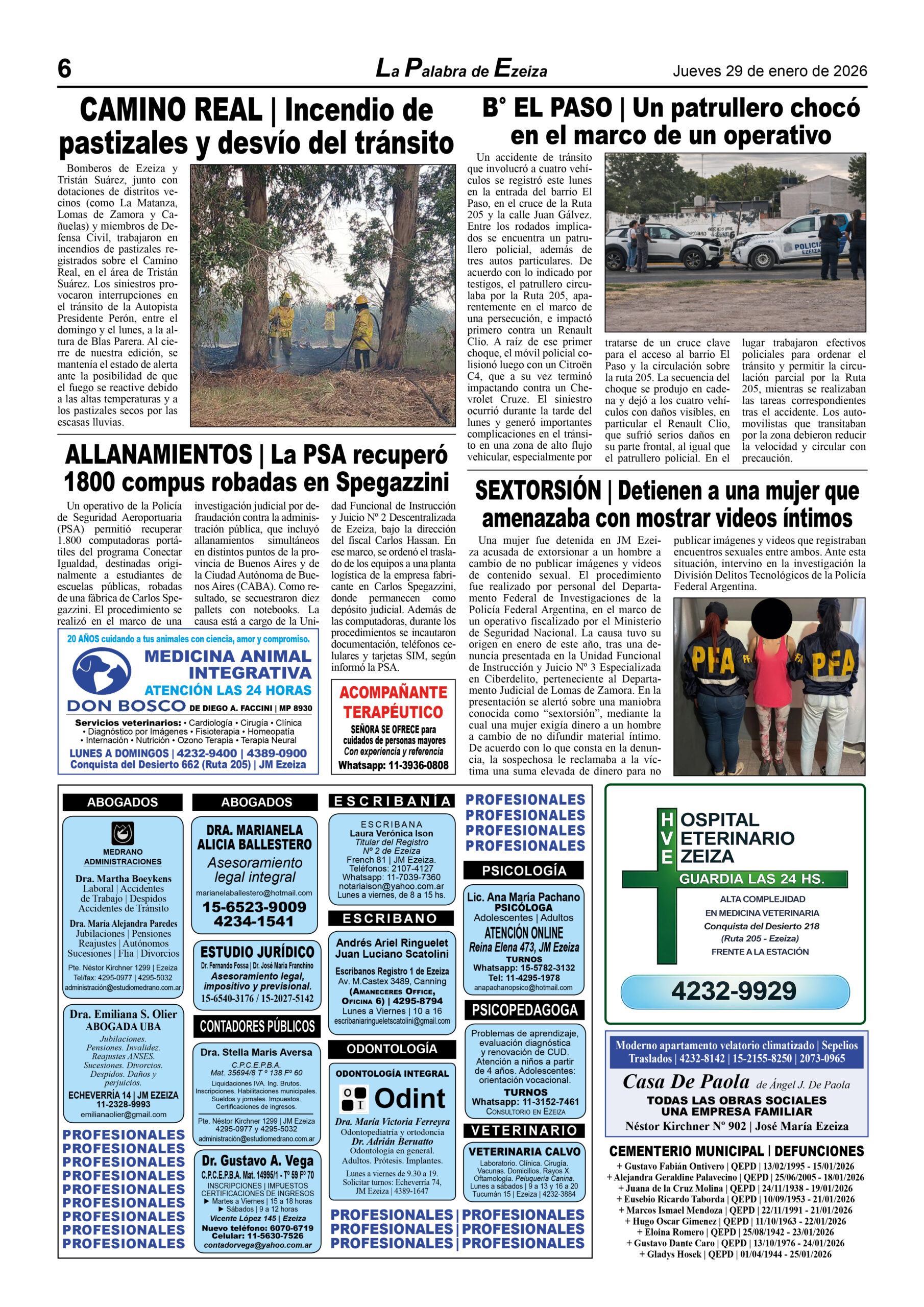 LA PALABRA DE EZEIZA SALE TODOS LOS JUEVES. Atención: Tucumán 142, José María Ezeiza, lunes a viernes de 9 a 13 horas. Teléfono: (5411) 4232-6274. WhatsApp: 11-2338-2539. Email: ezeizaediciones@yahoo.com.ar
