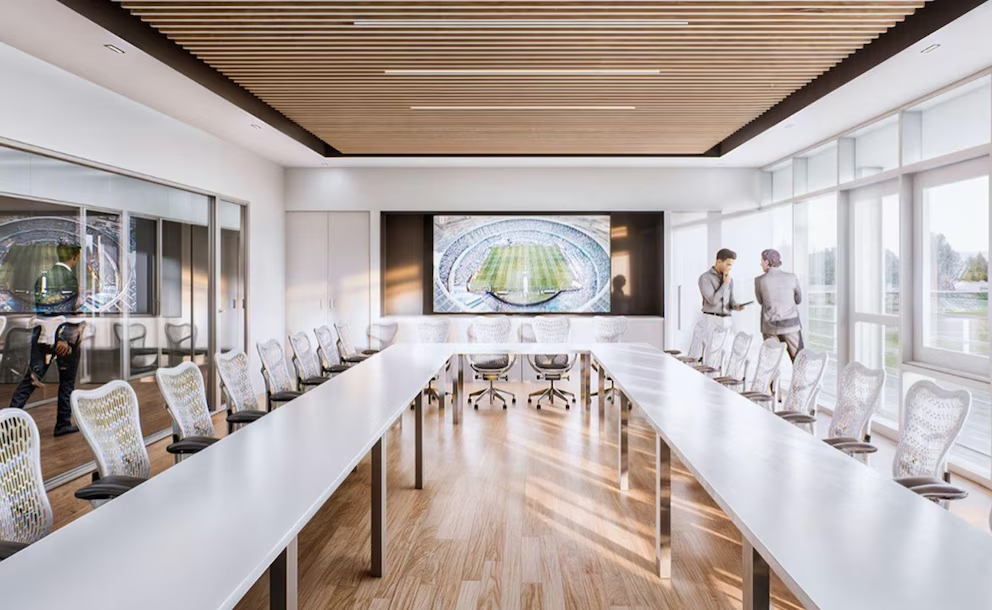 En la planta alta estarán las oficinas presidencial, de secretaría general, fútbol profesional, del departamento de prensa y también de marketing. Y el área central será el espacio para staff técnico y dirección deportiva, auditorio y sala de video con capacidad para 60 personas más el recinto para la función de videoanálisis.