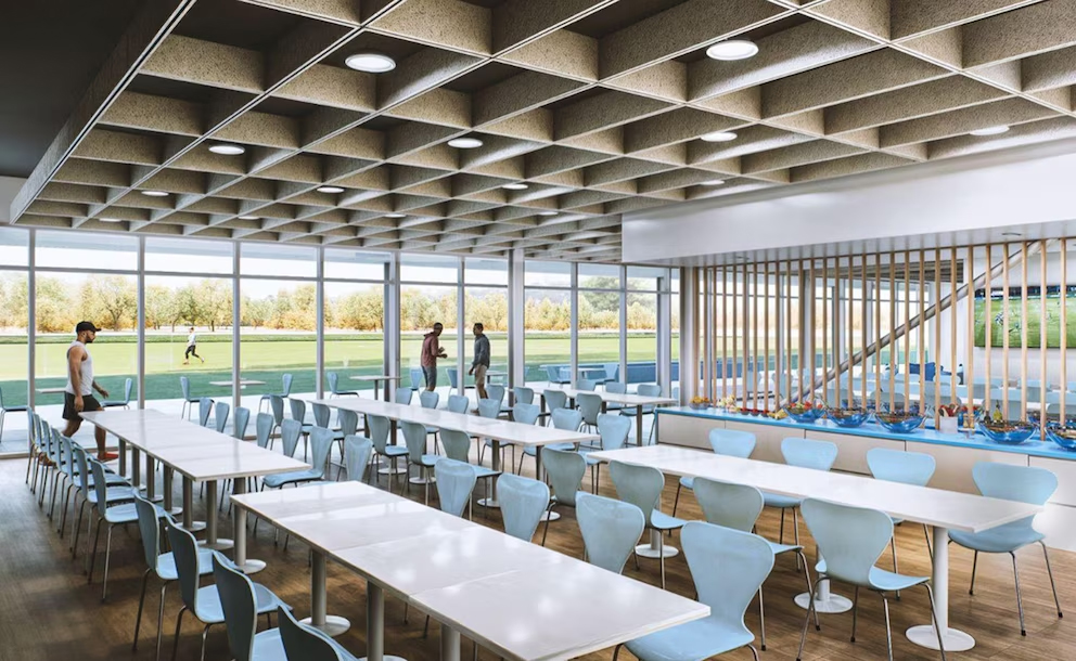 Serán 2600 m2 en PB 4500m2 distribuidos en dos pisos. La planta baja, con una extensión de 2600m2, albergará el gimnasio, los vestuarios, salón de hidroterapia, consultorios médicos, de kinesiología y neurociencia, además del comedor y la cocina. La sala de prensa tendrá vista al campo de juego para lograr interacción con espacios verdes.