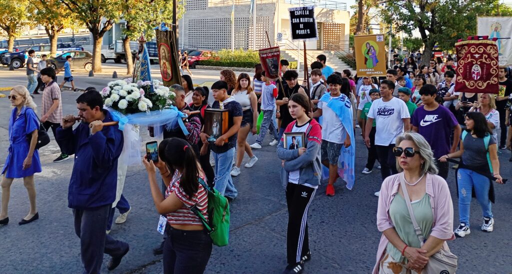 Con una procesión por las calles de Ezeiza y una misa frente a la parroquia de la calle French, se realizaron este sábado 18 de abril, las Fiestas Patronales en honor a Nuestra Señora del Valle, Patrona de Ezeiza, en el marco de su 76º aniversario. A las 17 se inició la procesión desde la parroquia Del Valle, hasta la estación de Ezeiza, para retornar por las calles Liniers y Córdoba hasta el templo que se vistió de fiesta. La celebración estuvo encabezada por el párroco Gabriel Coon, quién durante su homilía destacó: “reafirmar nuestra vida de fe, en presencia de María, agradecer a ella. Ella es la intercesora ante el Señor, toda devoción de la Virgen nos lleva a encontrarnos con Jesús. Venimos reflexionando desde Pascua sobre los discípulos, que somos cada uno de nosotros. María quiere una Iglesia como comunidad. La Virgen nos invita a encontrarnos con Jesús, que no nos deja solos”. Durante el oficio religioso se efectuaron bautismos.